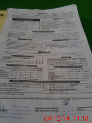 | School Visited by School Health & Nutrition Supervisor (No. of Visits) | 1 | Name1: | M Shoaib Abuzer | Name2: | |