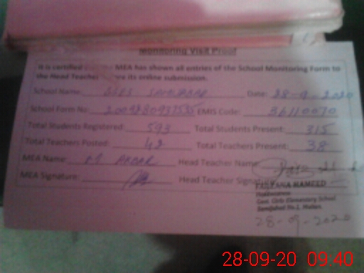 | EMIS Code: 36110070 | Name of School: GGES SAMIJABAD NO.1 MULTAN | |||