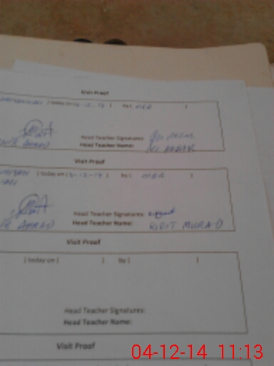 | Attendance Register | Head Teacher | MEA with School | Visit Proof |
