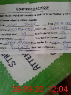 | Monitoring Date: 28-09-2020 | Start Time: 28-09-2020 11:20 AM | End Time: 28-09-2020 12:09 PM | Name of MEA: HA**** SA**** HU**** KA**** (R**** | |