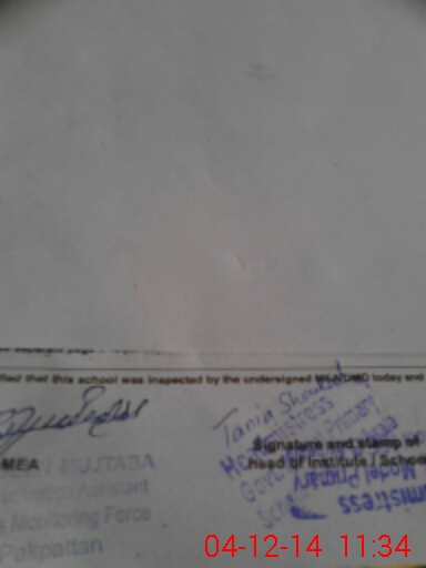 | Certified that this School was Inspected by the Undersigned MEA/DMO Today and the Information Stated Above is as Per Record. | |||||