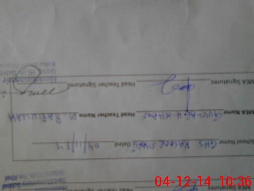 | Name: Za**** Sh**** Designation: (School Headmaster's/Headmistress's) PRINCIPLE Phone/Cell Number: 03**** |