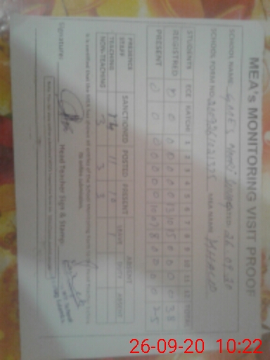 | Monitoring Date: 26-09-2020 | Start Time: 26-09-2020 09:16 AM | End Time: 26-09-2020 10:25 AM | Name of MEA: Kh**** Me**** | |
