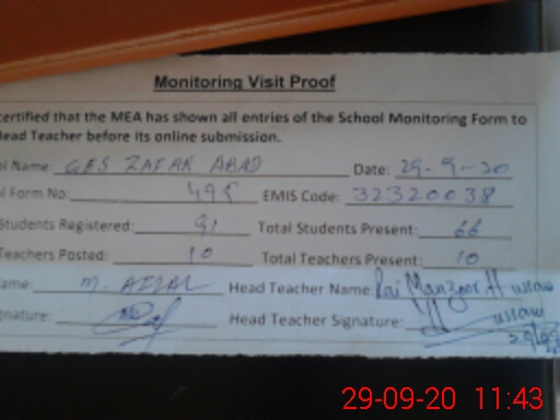 | EMIS Code: 32320038 | Name of School: GES ZAFAR ABAD | |||