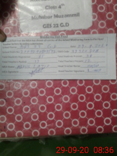 | EMIS Code: 39320408 | Name of School: GES CHAK NO. 22/G.D | |||