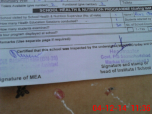 | Certified that this School was Inspected by the Undersigned MEA/DMO Today and the Information Stated Above is as Per Record. | |||||