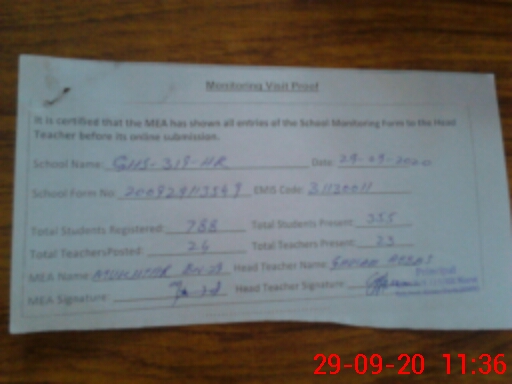 | Certified that this School was Inspected by the Undersigned MEA/DMO Today and the Information Stated Above is as Per Record. | |||||