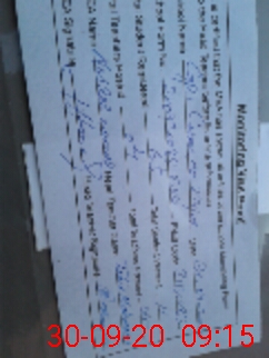 | Monitoring Date: 30-09-2020 | Start Time: 30-09-2020 08:57 AM | End Time: 30-09-2020 09:16 AM | Name of MEA: NA**** AH**** BN**** | |