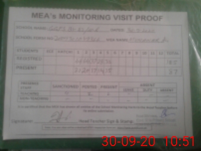 | Attendance Register | Head Teacher | MEA with School | Visit Proof |