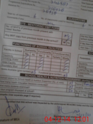 | Attendance Register | Head Teacher | MEA with School | Visit Proof |