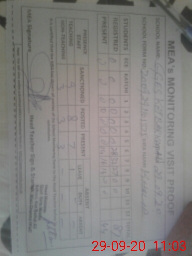 | Monitoring Date: 29-09-2020 | Start Time: 29-09-2020 10:14 AM | End Time: 29-09-2020 11:07 AM | Name of MEA: Kh**** Me**** | |