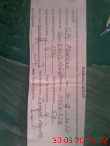 | Attendance Register | Head Teacher | MEA with School | Visit Proof |
