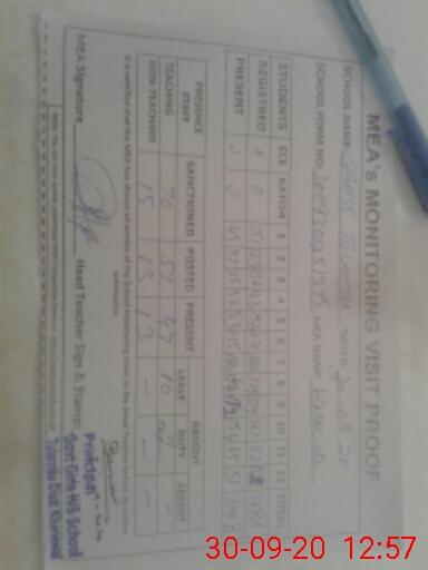 | Attendance Register | Head Teacher | MEA with School | Visit Proof |