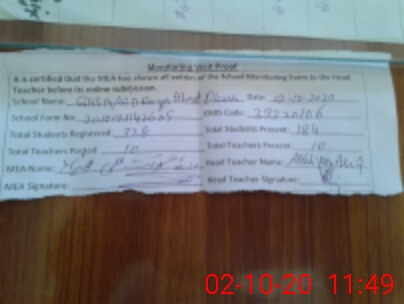 | Certified that this School was Inspected by the Undersigned MEA/DMO Today and the Information Stated Above is as Per Record. | |||||