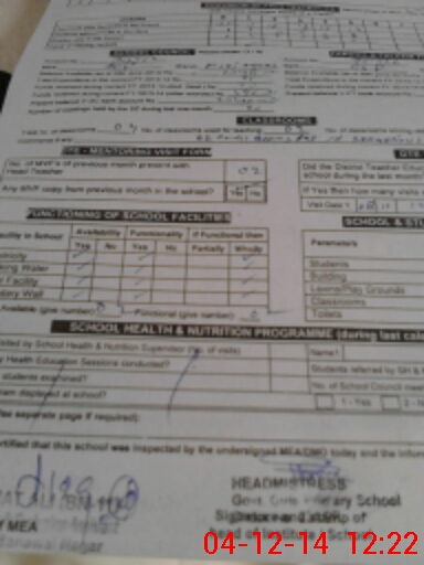 | Attendance Register | Head Teacher | MEA with School | Visit Proof |