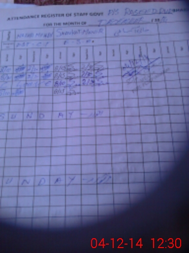 | Monitoring Date: 04-12-2014 | Start Time: 04-12-2014 12:20 PM | End Time: 04-12-2014 12:32 PM | Name of MEA: Za**** Iq**** Kh**** | |