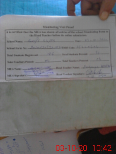 | Attendance Register | Head Teacher | MEA with School | Visit Proof |
