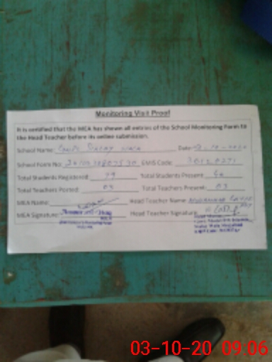 | Attendance Register | Head Teacher | MEA with School | Visit Proof |
