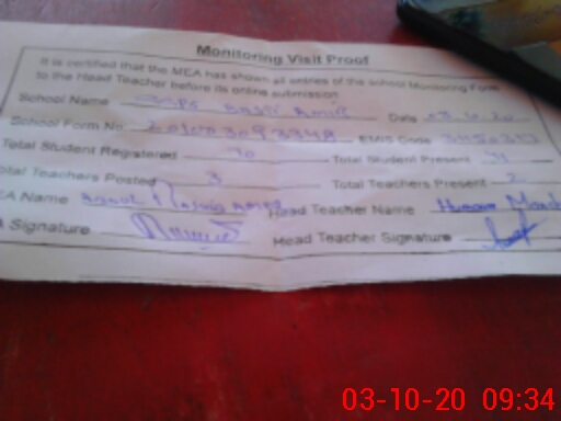 | Certified that this School was Inspected by the Undersigned MEA/DMO Today and the Information Stated Above is as Per Record. | |||||