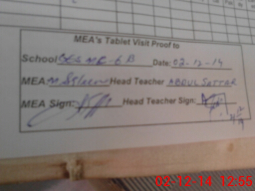 | Attendance Register | Head Teacher | MEA with School | Visit Proof |