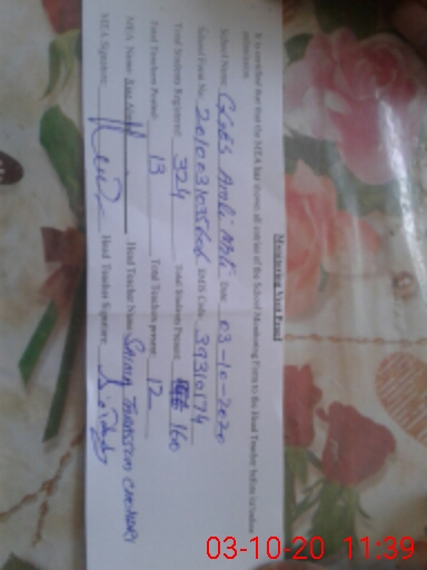| Attendance Register | Head Teacher | MEA with School | Visit Proof |