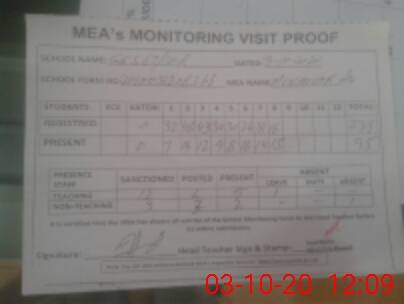 | Attendance Register | Head Teacher | MEA with School | Visit Proof |