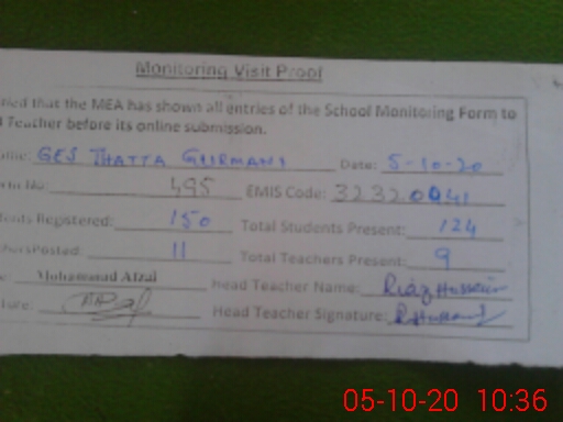 | EMIS Code: 32320041 | Name of School: GES THATTA GURMANI | |||
