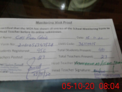 | Attendance Register | Head Teacher | MEA with School | Visit Proof |