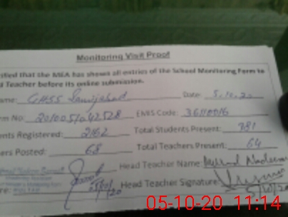 | Attendance Register | Head Teacher | MEA with School | Visit Proof |