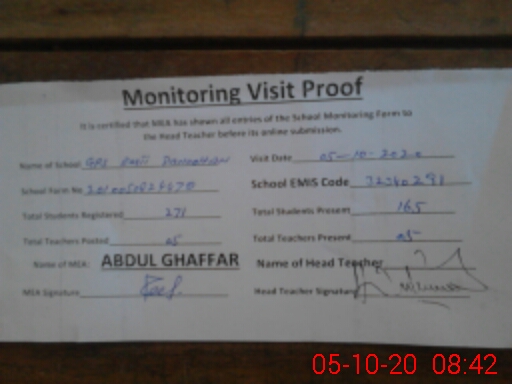 | Certified that this School was Inspected by the Undersigned MEA/DMO Today and the Information Stated Above is as Per Record. | |||||