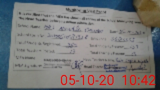 | Monitoring Date: 05-10-2020 | Start Time: 05-10-2020 10:22 AM | End Time: 05-10-2020 10:44 AM | Name of MEA: MA**** ULHA**** KH**** | |