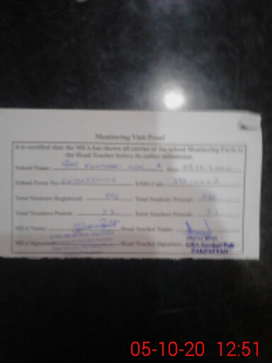 | Certified that this School was Inspected by the Undersigned MEA/DMO Today and the Information Stated Above is as Per Record. | |||||