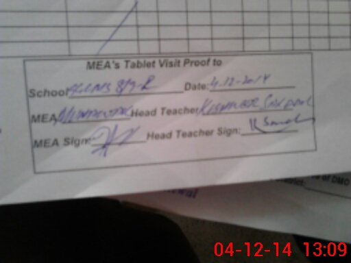 | Attendance Register | Head Teacher | MEA with School | Visit Proof |