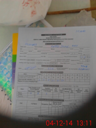 | Monitoring Date: 04-12-2014 | Start Time: 04-12-2014 12:50 PM | End Time: 04-12-2014 01:17 PM | Name of MEA: BA**** HU**** SH**** | |