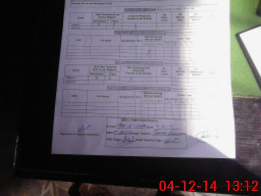 | Monitoring Date: 04-12-2014 | Start Time: 04-12-2014 01:01 PM | End Time: 04-12-2014 01:15 PM | Name of MEA: M.Af**** (R**** | |
