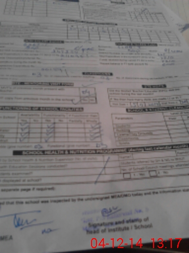 | Attendance Register | Head Teacher | MEA with School | Visit Proof |