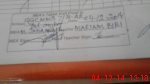 | Attendance Register | Head Teacher | MEA with School | Visit Proof |