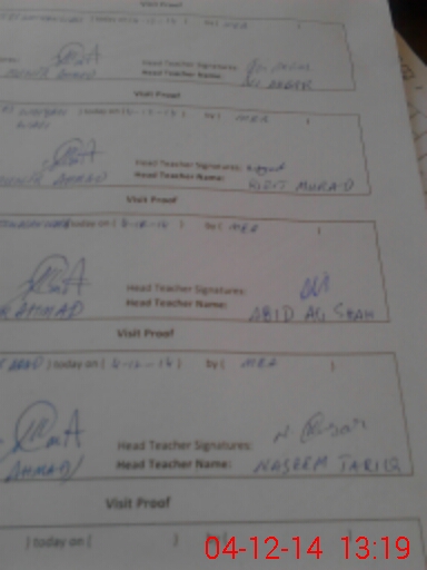 | Attendance Register | Head Teacher | MEA with School | Visit Proof |
