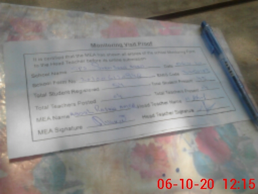 | Attendance Register | Head Teacher | MEA with School | Visit Proof |