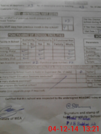 | Certified that this School was Inspected by the Undersigned MEA/DMO Today and the Information Stated Above is as Per Record. | |||||