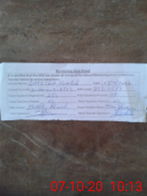| Attendance Register | Head Teacher | MEA with School | Visit Proof |