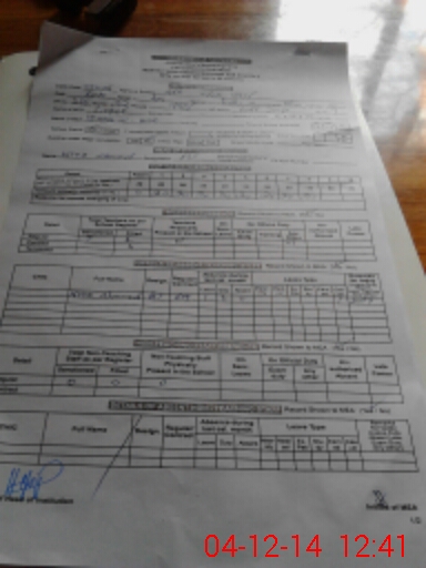 | CNIC | Full Name | Designation | R/C | Absence During Last Calender Month |