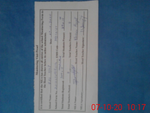 | Remarks (Use Separate Page if Required): NO VISIT OF AEO FOR LAST MONTH NSB RECORD NOT MENTAIND FROM MAY TO TODATE NSB ACCOUNT STATEMENT NOT HELD IN SCHOOL | |||||
