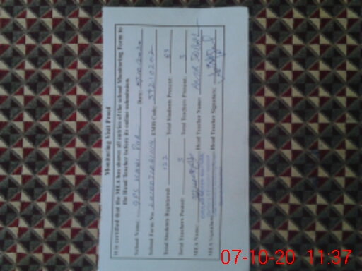 | Attendance Register | Head Teacher | MEA with School | Visit Proof |
