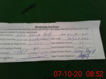 | Attendance Register | Head Teacher | MEA with School | Visit Proof |