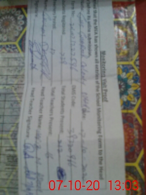 | Attendance Register | Head Teacher | MEA with School | Visit Proof |