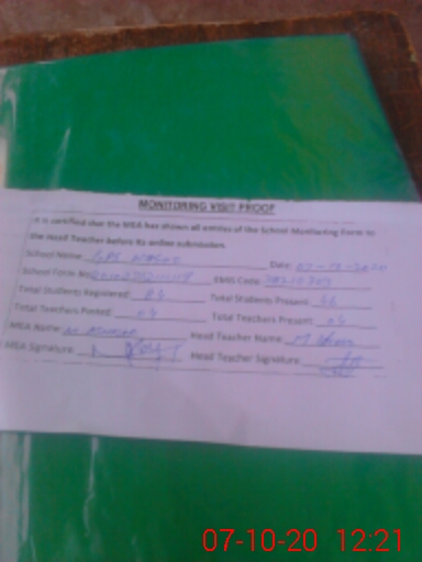 | Attendance Register | Head Teacher | MEA with School | Visit Proof |