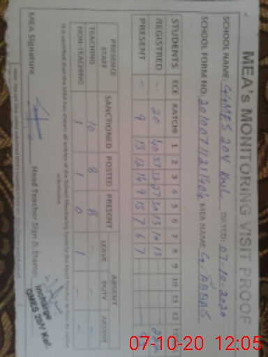 | Attendance Register | Head Teacher | MEA with School | Visit Proof |