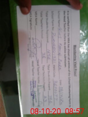 | Attendance Register | Head Teacher | MEA with School | Visit Proof |