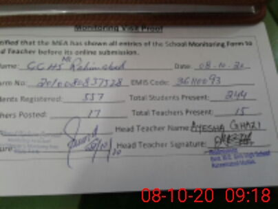 | EMIS Code: 36110093 | Name of School: GGHS MC RAHIM ABAD MULTAN | |||